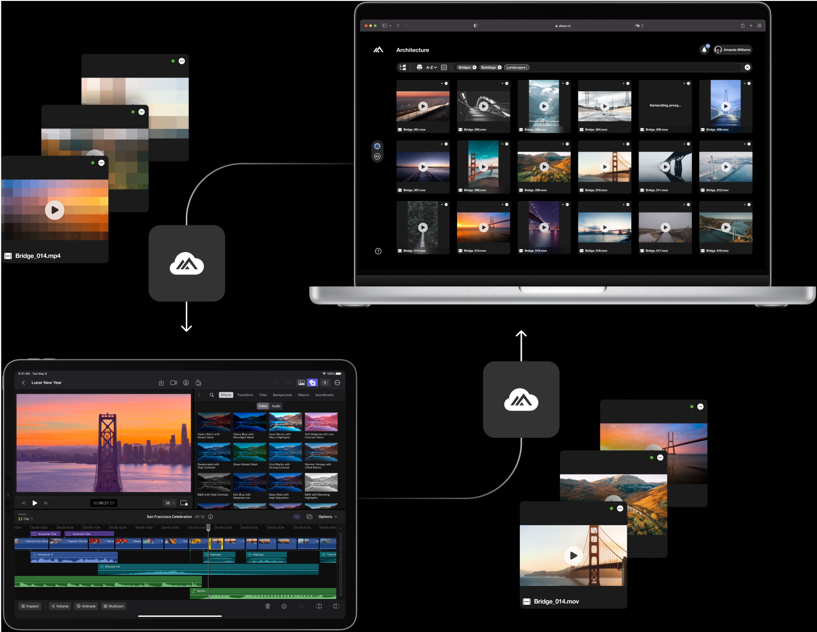 Upload once, and choose exactly how your media is prepared. High-resolution files can be transcoded on device or in the cloud into lightweight, editable proxies, while your originals remain secure and untouched. Start cutting when you're ready, deliver in the formats you need, and keep your workflow moving—on your terms.